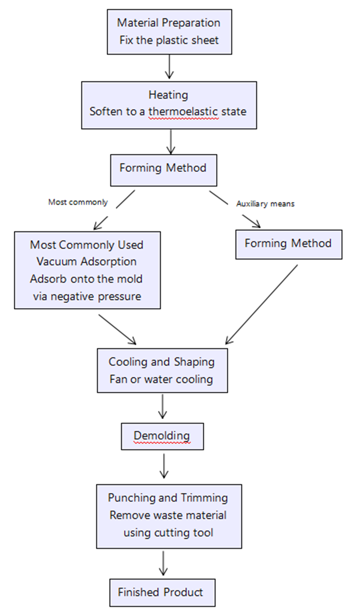 मूल सिद्धान्त: प्लास्टिक पानालाई तताउनुहोस् र नरम गर्नुहोस्, त्यसपछि यसलाई मोल्ड सतहमा सोख्न भ्याकुम प्रयोग गर्नुहोस्, र यो चिसो पछि आकार लिन्छ।